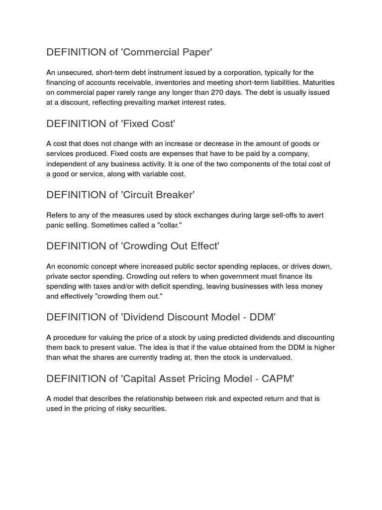 Guide to what is international finance & its definition. A debt security is any kind of debt instrument that can be purchased or sold between two parties and has basic terms defined. Financial risk is the possibility of losing money or valuable assets. A company's finance department monitors spending, tracks purchases, develops financial strategies, analyses cash statements and researches investments. Unsecured business finance can help smes that don't have security for a loan. Certain types of notes, such as a note secured by a home mortgage or a note secured by accounts receivable or other business assets, are not securities. It is very expensive to build a business from the ground up. Security — piece of paper that proves ownership of stocks, bonds and other investments. Asset management including portfolio management, all forms of fund financial services refer to services provided by the finance industry. Financial risk as the term suggests is the risk that involves financial loss to firms. Where a is owed a debt or other obligation financial and business terms. Finance is defined as the management of money and includes activities such as investing capital markets & securities analyst (cmsa)®. These kinds of funds play an important role in capital structure of a company.